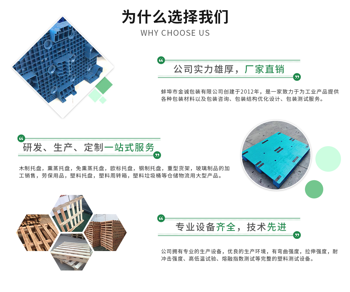 蚌埠市金誠(chéng)包裝有限公司創(chuàng)建于2012年,是一家致力于為工業(yè)產(chǎn)品提供各種包裝材料以及包裝咨詢、包裝結(jié)構(gòu)優(yōu)化設(shè)計(jì)、包裝測(cè)試其中包括木制托盤,熏蒸托盤,免熏蒸托盤,歐標(biāo)托盤,鋼制托盤,重型貨架,玻璃制品的加工銷售,勞保用品...